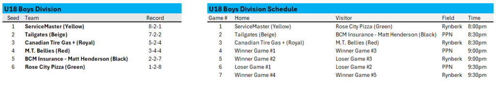 All divisions (U10, U12, U14, U18 Boys and Girls) will compete in a structured playoff format leading into the Christmas Break, with every team guaranteed a minimum of two games and a chance to battle for their division title.